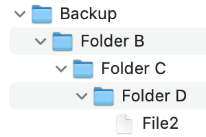 “from root”: Folder A ▸ Folder B ▸ Folder C ▸ Folder D . That is, the new file’s full path (Folder D, inside Folder C, inside Folder B, inside Folder A) is recreated within the Backup folder, and the file is moved to the new Folder D.