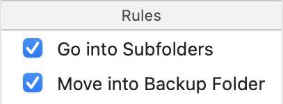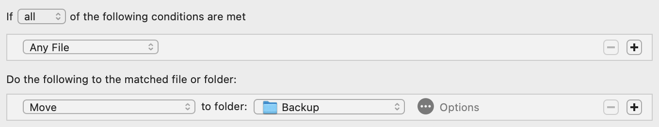 The second rule uses the “Move” action (although “Copy” or “Upload” would also work), in this case using a folder named “Backup” as the destination: